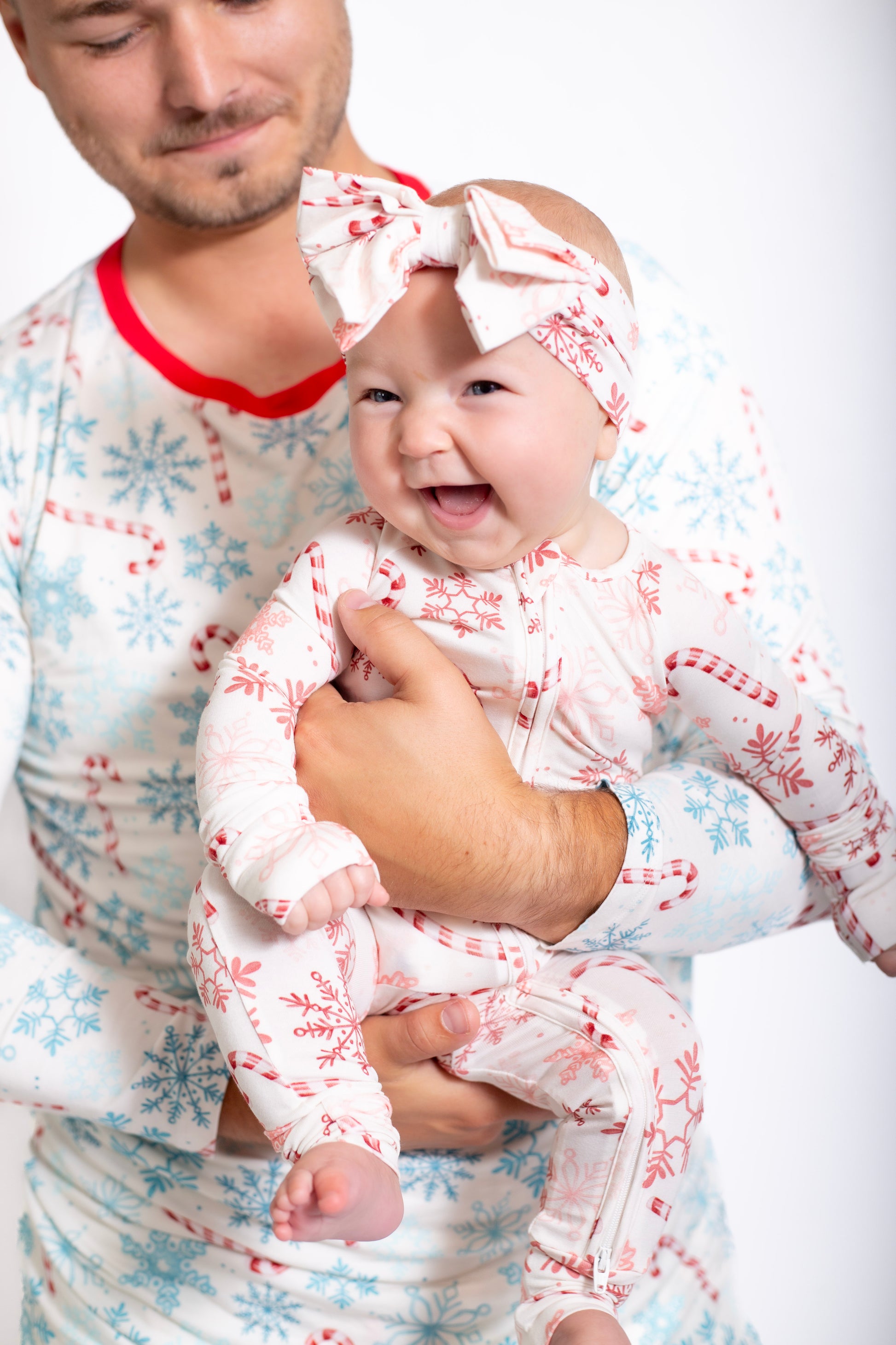 Available on soft nylon headbands for babies or alligator clips for toddlers and older kids, they’re gentle on delicate hair and easy to slip on in a snap. Whether paired with our matching sleepwear or worn as a standalone pop of holiday joy, these bows are merry little must-haves.