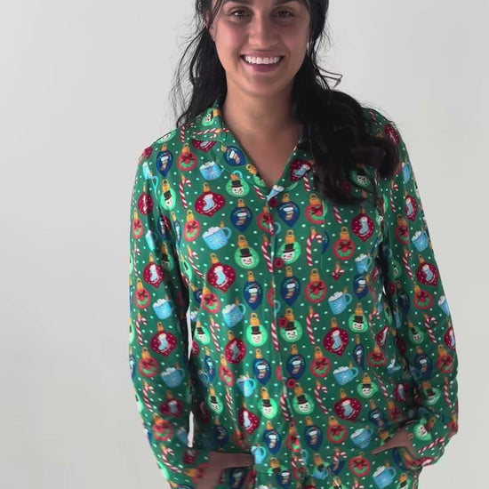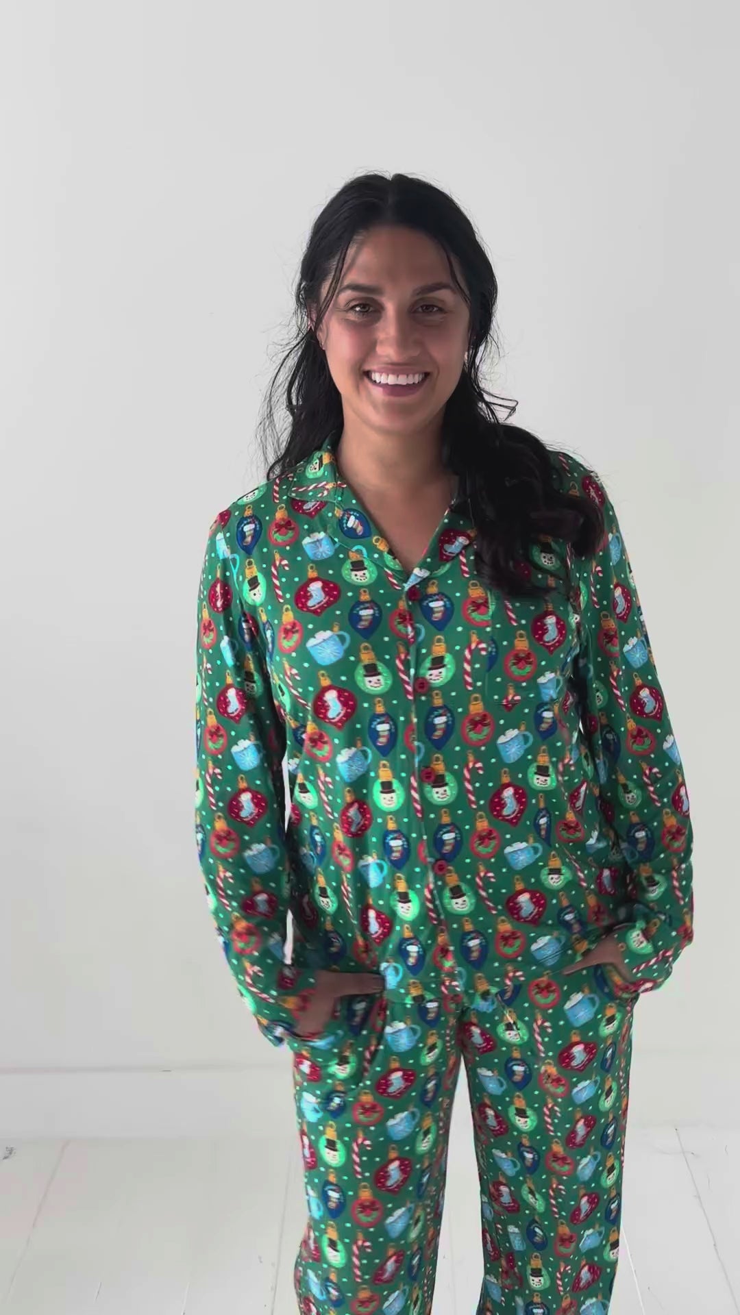Timeless, tailored, and irresistibly soft, our My First Christmas Pajama Set brings a touch of elegance to holiday lounging. Featuring a button-down top with a notched collar and matching pants, this set is crafted from our signature bamboo viscose—silky-smooth, breathable, and designed to drape like a dream.