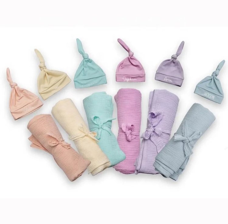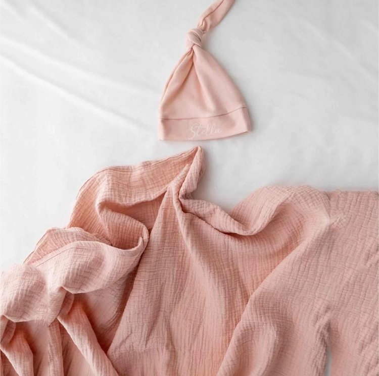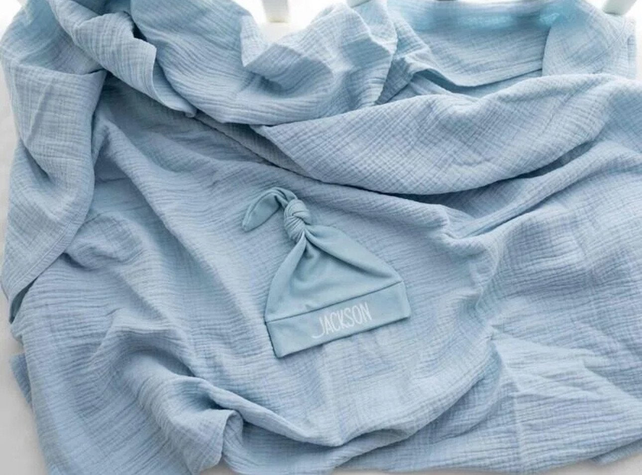 2-Piece Muslin Newborn Set – Personalized Swaddle, Hat or Bow