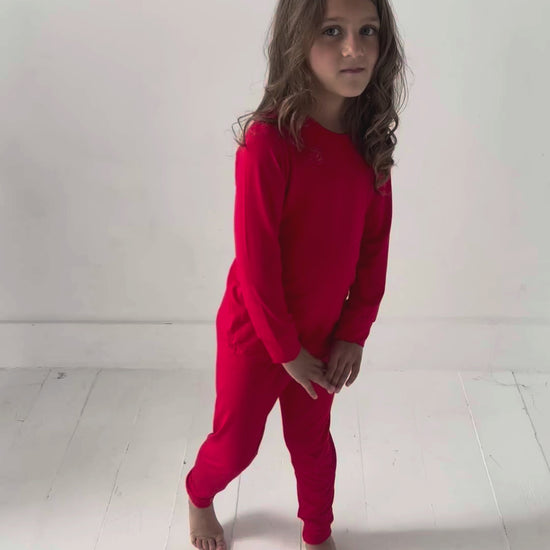 Wrap your little one in the warmth of the holidays with our solid red and green bamboo two-piece pajamas — a timeless classic made for memory-making moments.